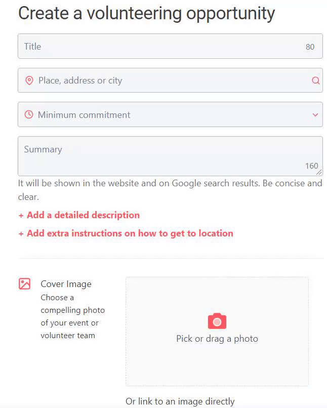 If no image is selected, the cover photo of your organisation page will automatically be used for your opportunity or event