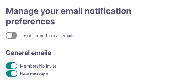 You can unsubscribe and subscribe from different notifications by clicking on the buttons next to the notification description. If they are grey, you are unsubscribed from the email notification. If the button is coloured, you are subscribed.