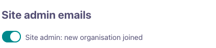 New organisation joined. Adjust. Enable. Disable. Email settings.