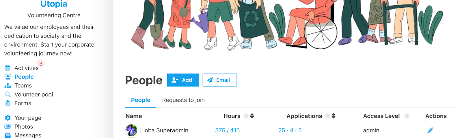 - Go to your organisation page and, in the left-hand menu, click “People”
