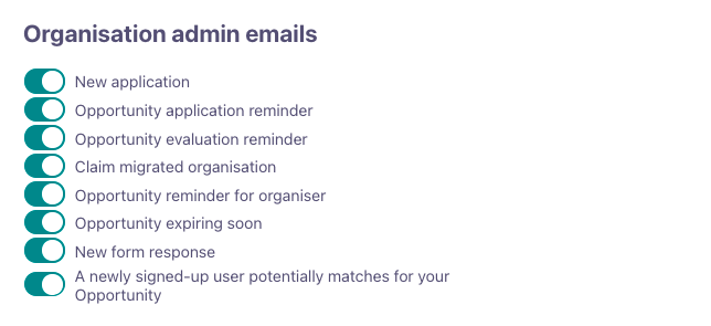 If you are admin of an organisation, you get notification emails regarding the opportunities posted by your organisation. This is to make sure you are up to date about applications and about opportunities your organisation has posted.