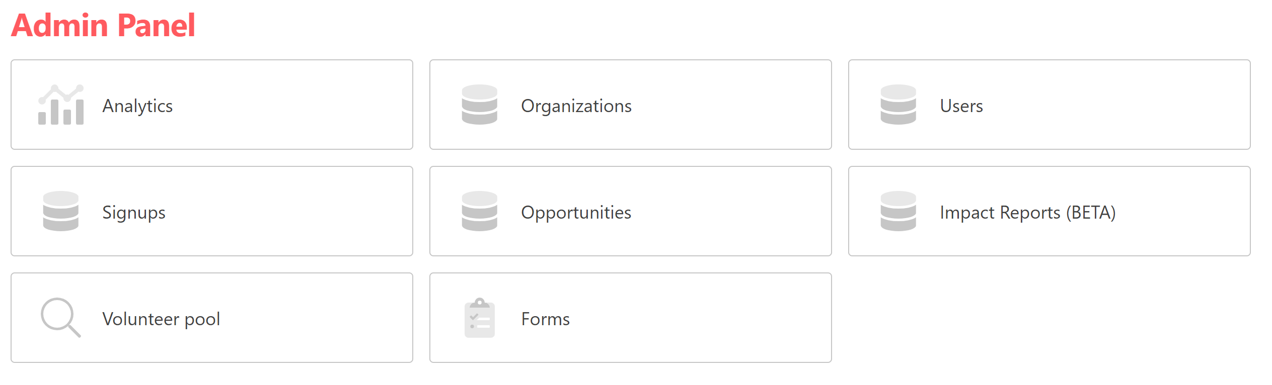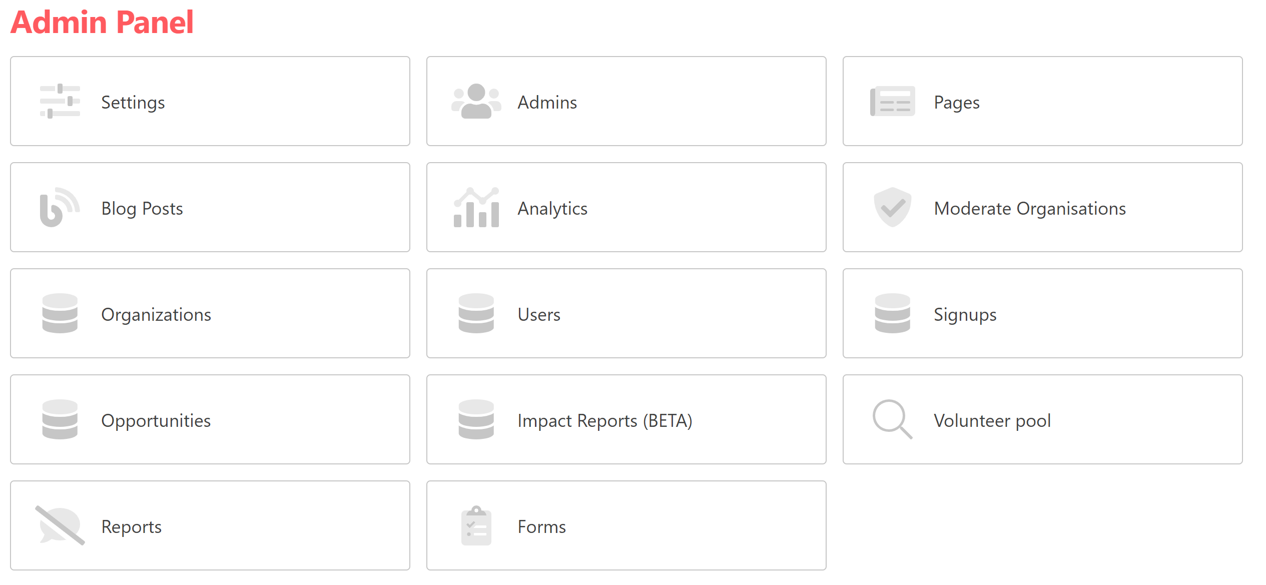 Moderators have access to a subset of the platform, namely the data overview of organisations, users, signups, and opportunities. Furthermore, moderators can make adjustments to organisations and opportunities on the platform and look into the analytics dashboard. For example, moderators cannot modify or create pages.