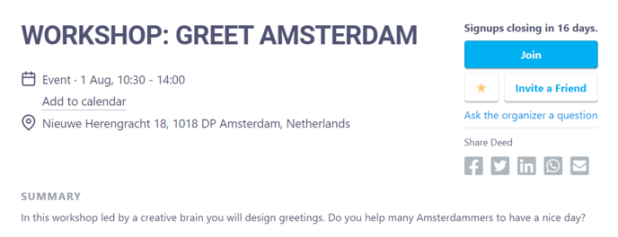 You can share your opportunity via social media (Facebook, Twitter, LinkedIn) to increase your reach and chances at more applications under 'Share Deed'