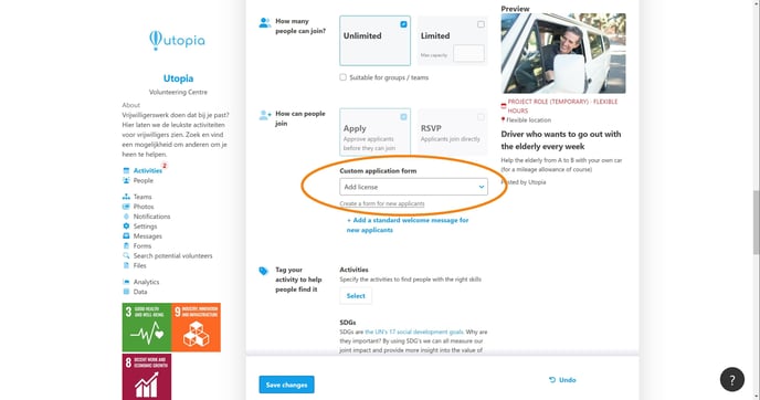 Forms can be added to activities / opportunities to gather more information about the applicant / volunteer.