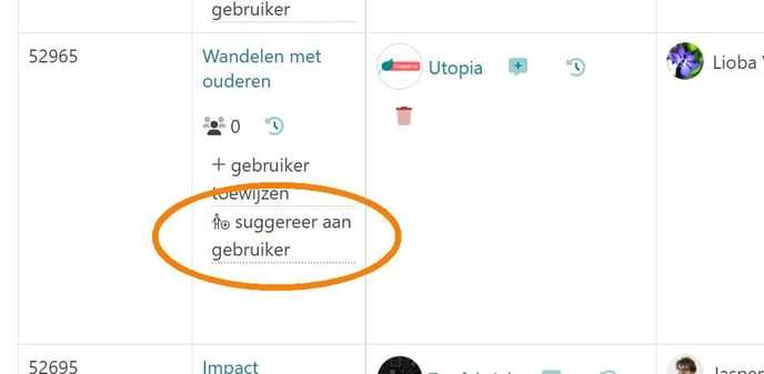 Het is ook mogelijk om zelf de rol van intercedent te spelen door activiteiten te suggereren aan gebruikers. Dit proces staat los van de vrijwilligerspool, maar werkt vrijwel hetzelfde. Het enige verschil is dat je niet vanuit de vrijwilligerspool werkt, maar vanuit de database. Zie jij een activiteit en denk je dat die goed past bij een bepaalde gebruiker? Klik dan op 'Suggereer aan gebruiker' en stuur een bericht.