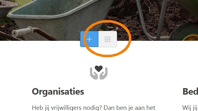Als je op het icoontje klikt verschijnen er een aantal opties die grotendeels overeenkomen met alle bestaande secties. Als je een optie selecteert dan wordt er een content-sectie aangemaakt waarbij er automatisch al teksten en buttons aan toegevoegd zijn.