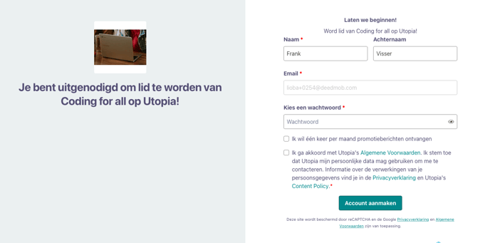 Als ze op de bevestigingslink klikken zien leden het volgende scherm waarin ze hun wachtwoord kunnen kiezen: