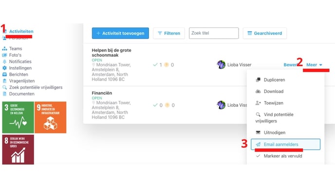 Je kunt de vrijwilligers die zich hebben aangemeld voor jouw vacature gemakkelijk een email versturen.